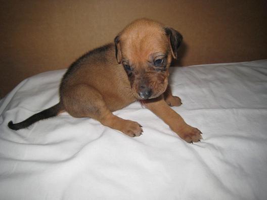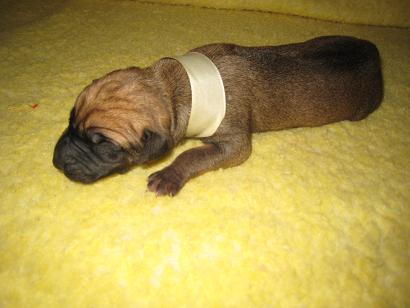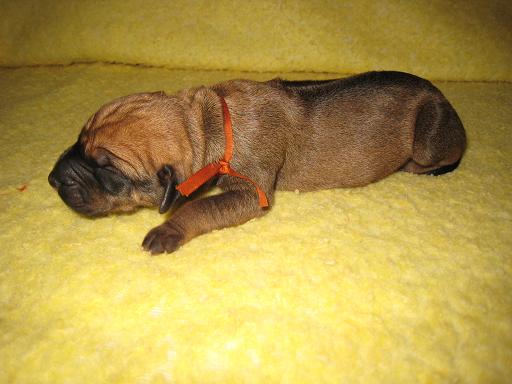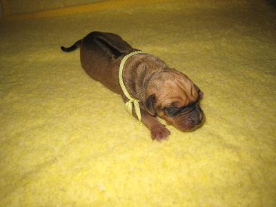 Není jisté zda bude standardní, je to nejmenší pejsek, který však rychle dohání svoje sourozence. Narodil se jako první a jako jediný přirozenou cestou. Přes svoji nižší váhu drží krok s ostatními a dokáže se prosadit. Bude z něj asi pěkný divoch.